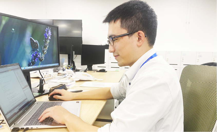 大学で学んだスキルを活かし、地元である愛知県でITエンジニアとして活躍したいと考えたのが一番の理由です。今はSEとしてお客さまとやり取りすることが多いですが、入社1〜2年はプログラマーとして、大学で培った知識やスキルが大いに役立ちました。