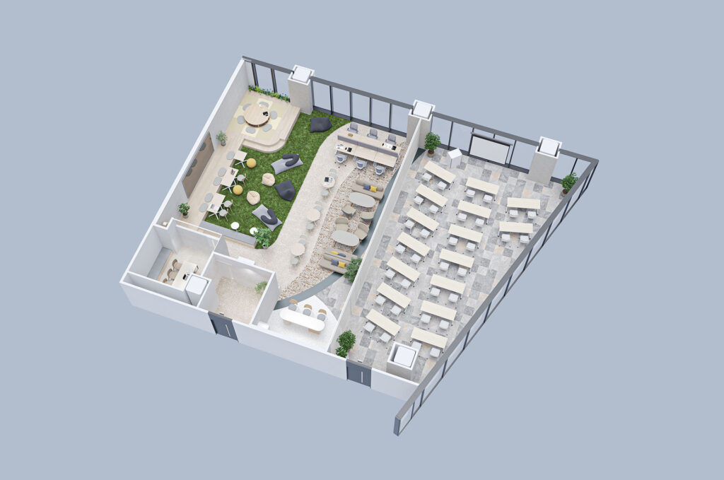 多様な働き方と、事業本部を超えた社内交流を支える新たな拠点として